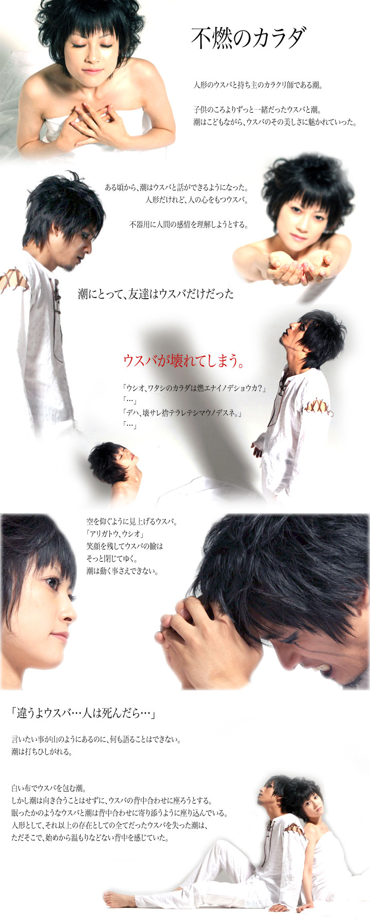 ここでは毎回、役者さんをゲストとしてお招きしたときには短い台本を作り、 芝居しているところを写真にしてみようというコーナーです。モデルさんにはできない表情を撮れたらいいな。と、思います。